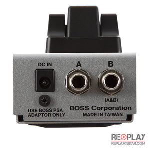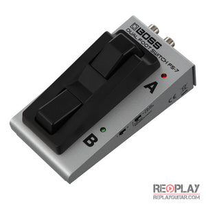 The Boss FS-7 is a compact dual footswitch for remote control of effect pedals or amp channel switching in a durable steel chassis. Two footswitches are arranged in tandem, which saves space on effects pedal boards. Two selectable modes for latch or momentary allow for control of a wide range of equipment. The latch/momentary switching function is common to A and B. Powered via 9v adapter (power splitter included) with battery-free operation (operates as momentary switch with no power, LEDs will not illuminate without AC power.)