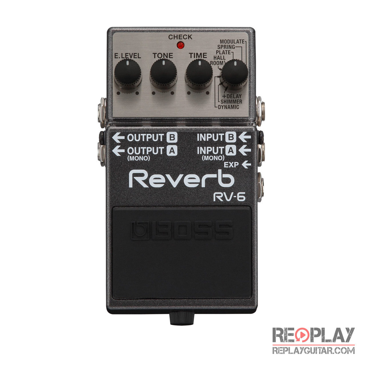 Combining high-end sound and wide-ranging versatility, the RV-6 takes pedal-based reverb to the next level. Reaching beyond the capabilities of previous generations, this powerful stomp employs the latest tech and legendary BOSS know-how to make it easy to get amazing reverb tones instantly. From subtle rooms to modern shimmer effects to long, evocative reverbs, the RV-6 envelops your tone in lush ambient spaces that endlessly inspire.