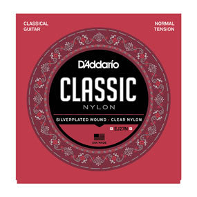 D'Addario's EJ27N Classic Nylon guitar strings are great for beginners, students and professionals alike. This normal tension set contains 3 clear nylon trebles and 3 silver-plated copper wound basses for the optimal balance of warm and projecting, long lasting tone. This normal tension set is also available for fractional 1/2 and 3/4 size classical guitars.