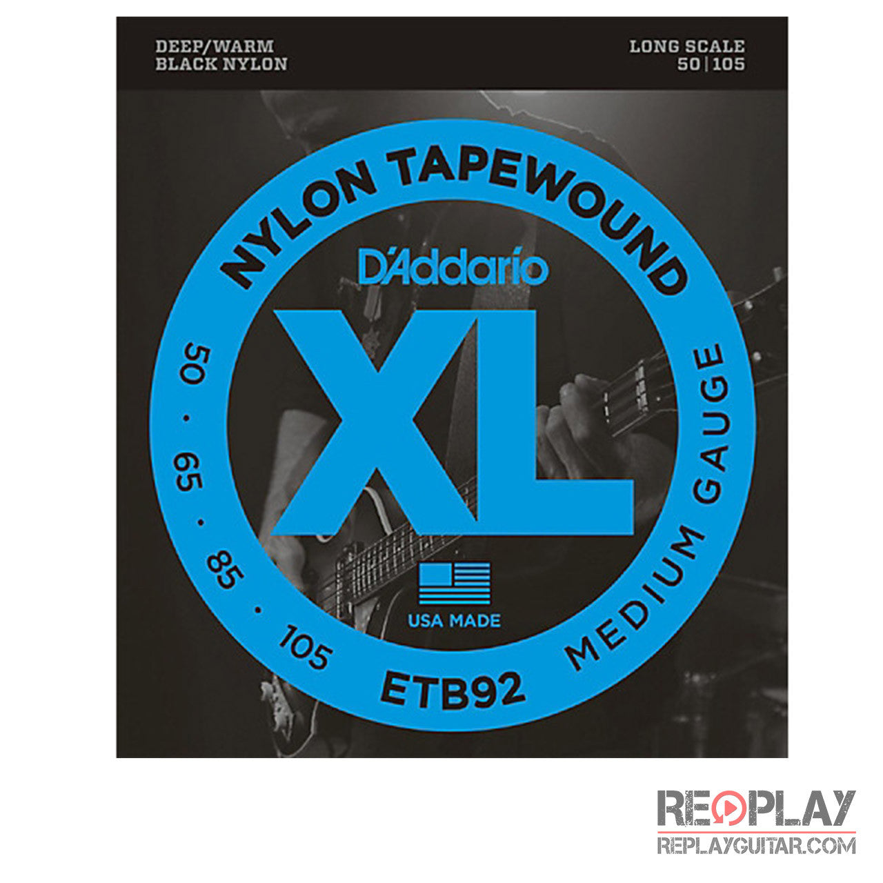 The ETB92 black nylon tapewound set offers the ideal combination of warm, deep tones with an ultra-smooth feel. This set offers a vintage tone ranging from the “thump” of an upright bass to the focused depth of traditional flatwound strings. Fits long scale basses with a string scale length of up to 36 inches.