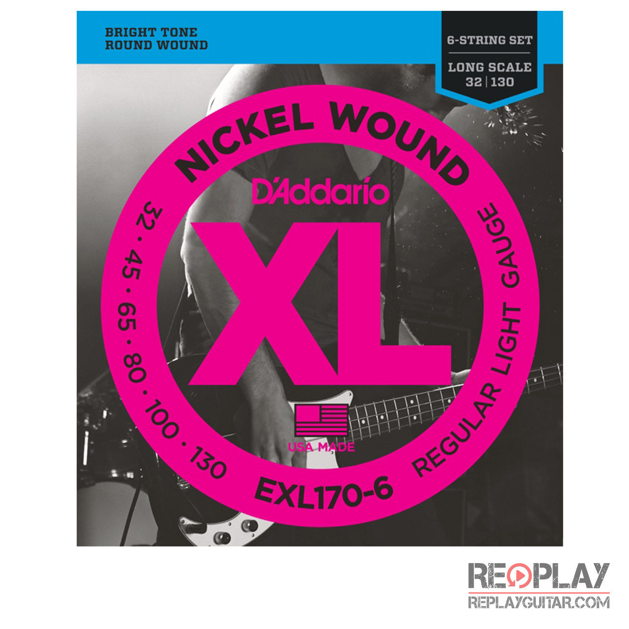 D'Addario EXL170-6 Nickel Wound 6-String Bass, Light, 32-130, Long Scale