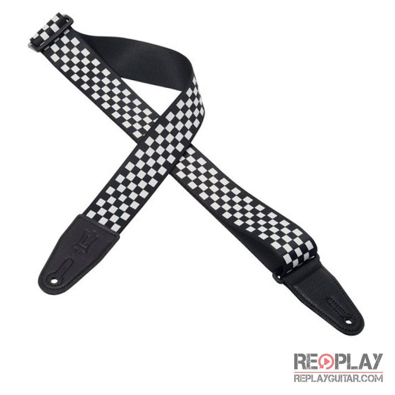 2″ polyester guitar strap with printed design, polyester ends and tri-glide adjustment. Adjustable to 65″.