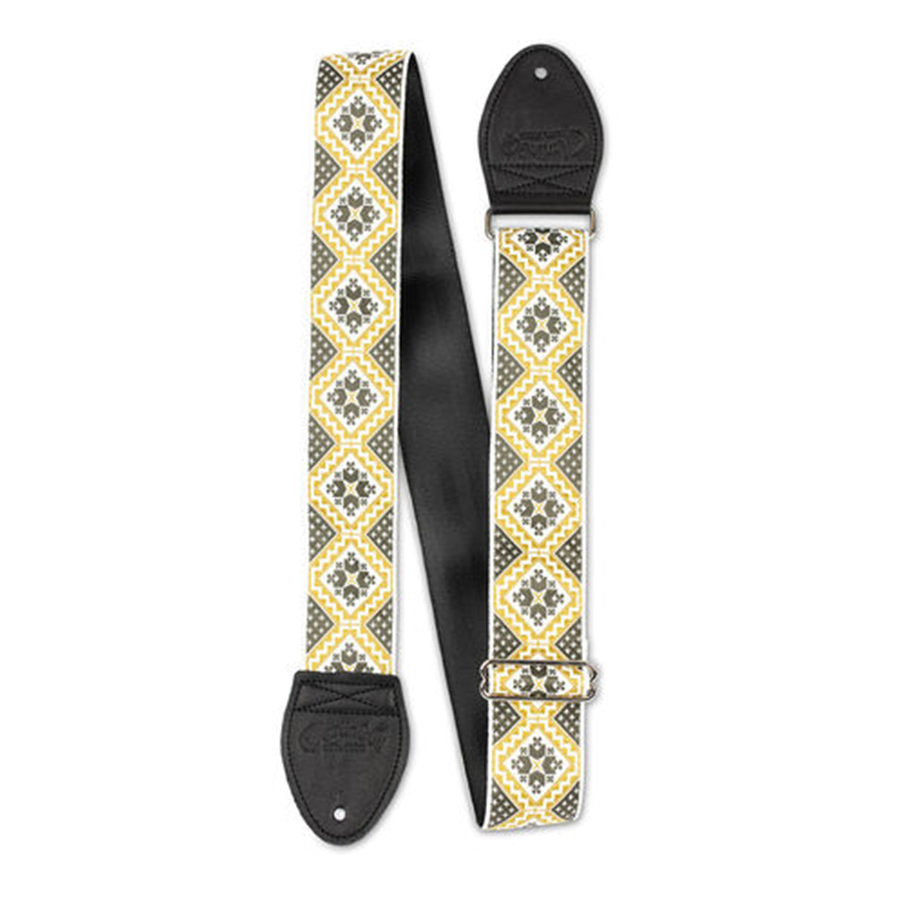 The Martin Souldier Slide Guitar Strap is a fantastic handmade strap, crafted in the USA for the player looking to express their inner spirit and commit to their craft. This Rustic Mustard-print strap is 2" in width, complete with black seatbelt backing, silver hardware and black leather ends embossed with Martin's CFM logo. The slide adjustment allows you to easily configure your length while the instrument sits snugly and firm during maneuvering.